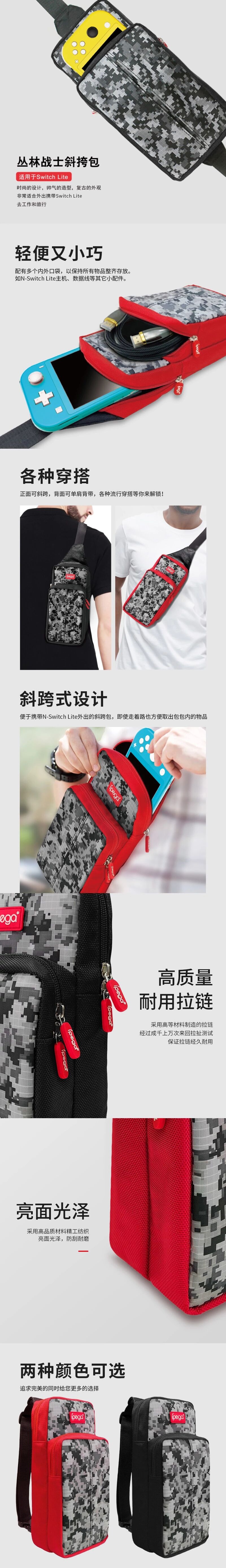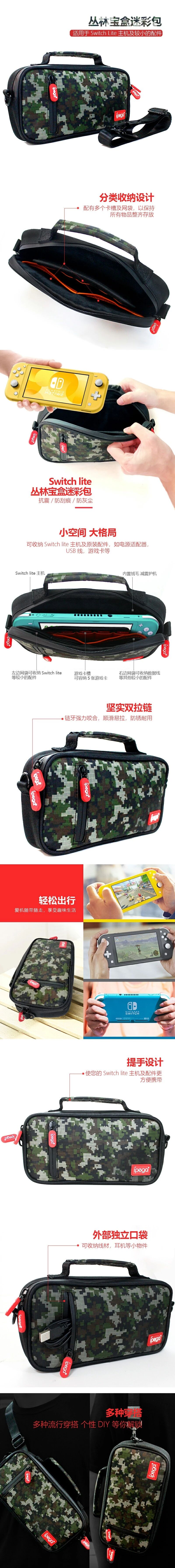 打着“便携”口号的NS Lite,想要外出时随心所欲能拿出进行游戏,当然少不了一款功能和时尚兼备的斜挎包,外观采用复古的迷彩设计,配有内外多个口袋,完美利用空间收纳主机与小配件;
