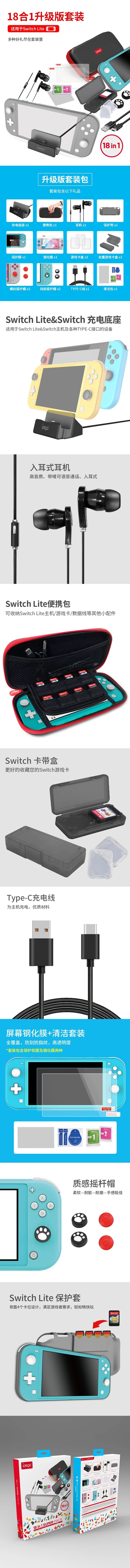 18合1的NS Lite配件,ipeag让玩家的需求得到一次性满足,套装从内到外每一个礼品都发挥着不可或缺的作用,最实用的就是完美贴合的NS Lite专属保护壳和ipega限定耳机;